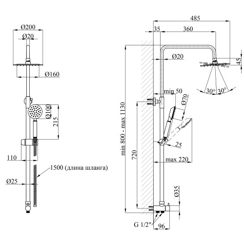 Душова система Kroner KRP Edelstahl Klassisch - ESG231 Flex