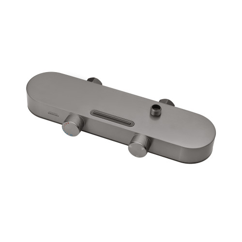 Конструкція виготовлена з латуні та міцного ABS пластику, що гарантує довговічність, стійкість до корозії та механічних пошкоджень. Двошарове нікель-хромове покриття у поєднанні з графітовим відтінком робить систему не лише надійною, а й візуально привабливою.