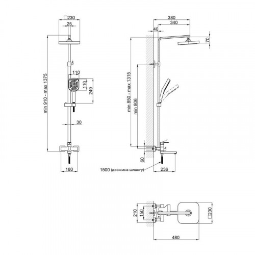 | Висота душової стійки, мм | 850-1315 |
