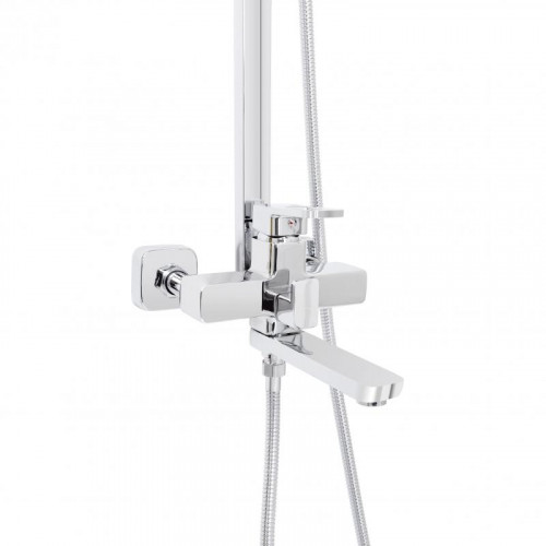 | Комплектація | Змішувач, кронштейн для верхнього душу, воронка для верхнього душу, кронштейн для ручного душу, воронка для ручного душу, душовий шланг, душова стійка, кріплення. |