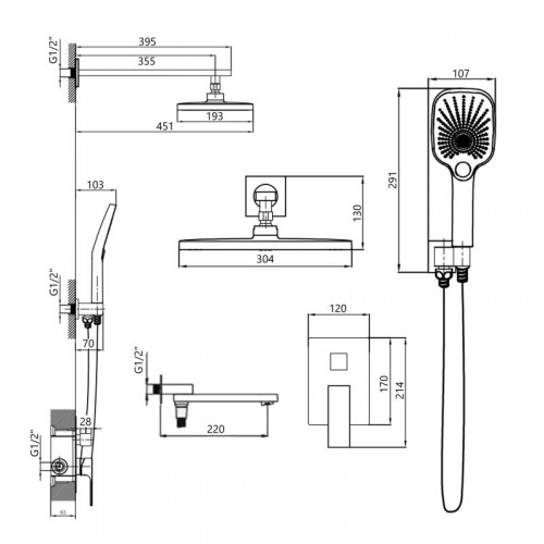 | Комплектація | Змішувач, вилив, лійка для ручного душу, душовий шланг, кронштейн, кріпильні деталі. |