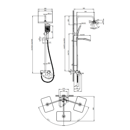 Душова система латунна універсальна Lidz Orion 1030 на три споживача (з виливом) (k35) LDORI1030CRM48092 Chrome