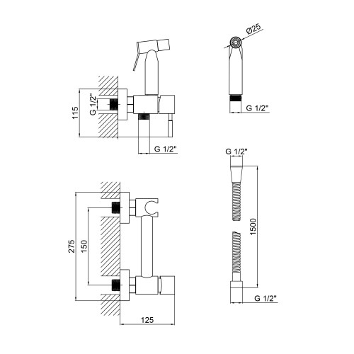 Набір для гігієнічного душу зі змішувачем Lidz Aria 02O-SES
