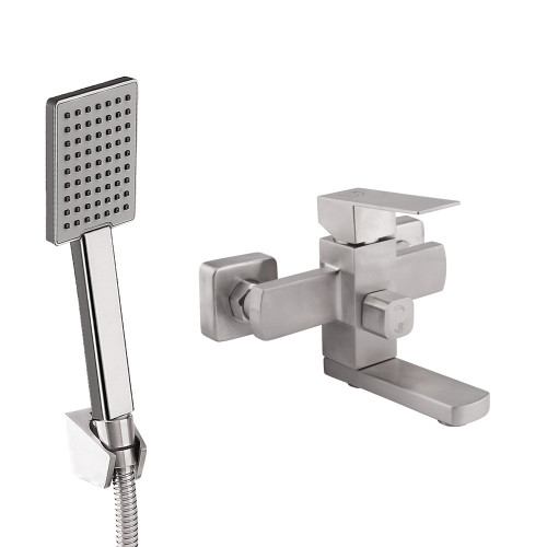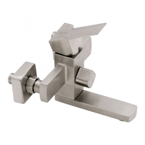 Змішувач для ванни Lidz (NKS) 10 30 006-1 виконаний в кубічному стилі з нержавіючої сталі, що гарантує тривалий термін експлуатації. Для включення подачі води досить підняти важіль і повернути його в необхідну сторону. Змішувач монтується на стіну над ванною за допомогою кріпильних елементів, які входять в комплект. Квадратні розетки приховають похибки установки на обробці. Тримач лійки кріпиться також на стіну. Таким чином, ваші руки будуть вільні під час прийняття душу.