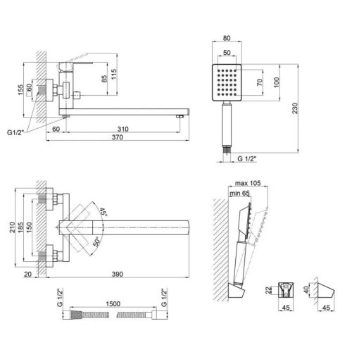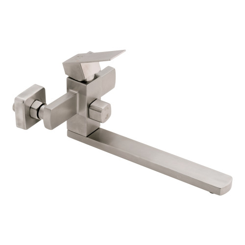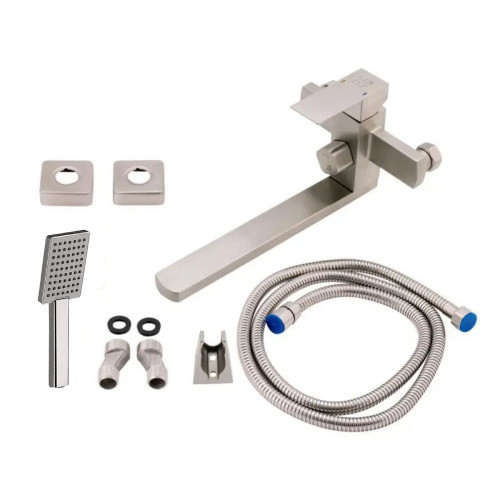 Змішувач для ванни Lidz (NKS) 10 30 005-1 виконаний у кубічному стилі з нержавіючої сталі, що гарантує тривалий термін експлуатації. Для включення подачі води достатньо підняти важіль і повернути його у потрібне положення. Змішувач монтується на стіну над ванною за допомогою кріпильних елементів, що входять до комплекту. Квадратні розетки приховують похибки установки на оздобленні. Тримач лійки також кріпиться на стіну. Таким чином, ваші руки будуть вільні під час прийняття душу.