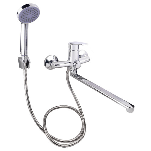 Змішувач для ванни Lidz (CRM) 19 46 005-1 New з довгим поворотним виливом виготовлено з цинку, укомплектовано кронштейном для ручного душу, душових шлангом і лійкою. Завдяки хромованому покриттю має міцну поверхню і привабливий зовнішній вигляд. Декоративні розетки приховають похибки установки на оздобленні кімнати. Напір води і її температура регулюються поворотом важеля в необхідне положення. Перемикання ванна/душ здійснюється за допомогою дивертора.