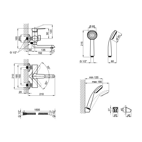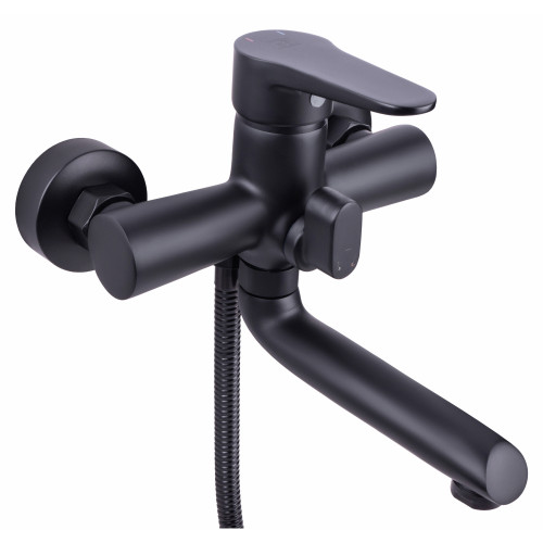 Змішувач для ванни Lidz (BLA) 14 43 006-1 з коротким поворотним виливом виготовлено з цинку, укомплектовано кронштейном для лійки, душовим шлангом і лійкою. Для включення потоку води передбачений важіль. Для перемикання на душ - дивертор. Настінний монтаж здійснюється за допомогою кріпильних деталей, які входять в комплект. Декоративні розетки приховають всі погрішності установки на обробці ванної кімнати.