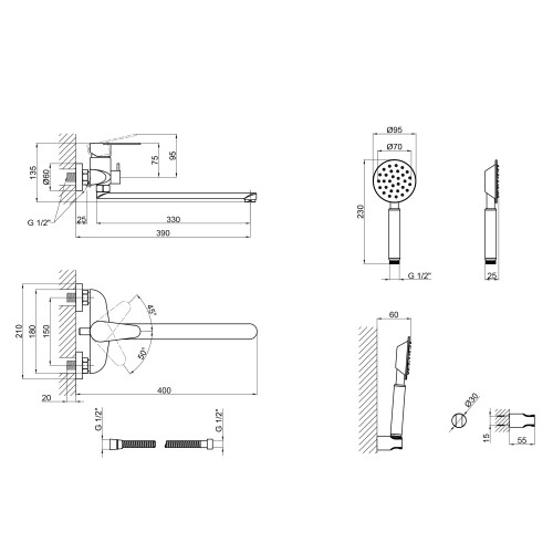 Змішувач для ванни Lidz (NKS) 09 35 005-1 виконаний з нержавіючої сталі, що гарантує тривалий термін експлуатації. Для включення подачі води досить підняти важіль і повернути його в необхідну сторону. Змішувач монтується на стіну над ванною за допомогою кріпильних елементів, які входять в комплект. Круглі розетки приховають похибки встановлення на обробці. Тримач лійки кріпиться також на стіну. Таким чином, ваші руки будуть вільні під час душових процедур.
