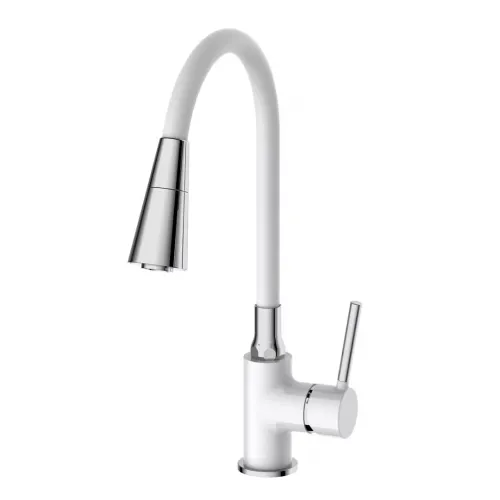 Змішувач для кухні Frap F4044-8 з гнучким виливом, 2 режими, білий/хром