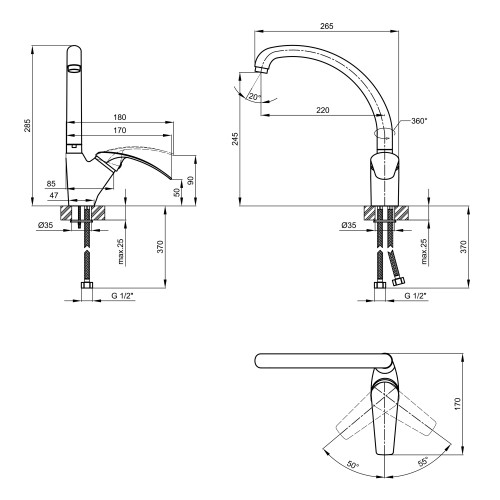 Змішувач для кухні Lidz (CRM) Mars 81 007-3