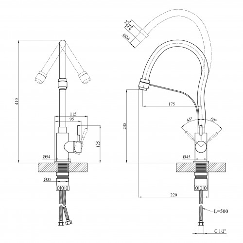 Змішувач для кухні Kroner KRP Edelstahl Klassisch - ESG03593BLK