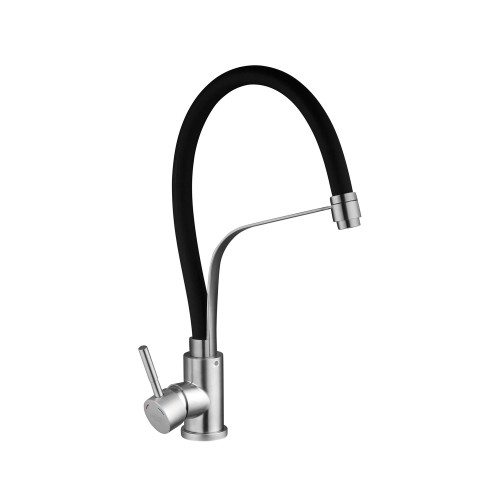 Kroner KRP Edelstahl Klassisch - ESG03593BLK — сучасний кухонний змішувач з елегантним чорним гусаком, який ідеально поєднує практичність і стиль. Корпус виготовлений із високоякісної нержавіючої сталі, що гарантує довговічність і стійкість до корозії. Гнучкий вилив забезпечує максимальну зручність у користуванні, дозволяючи легко направляти потік води.