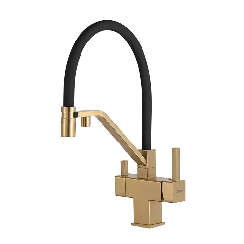 G4395-63 кухня під осмос одноваж. вис. силік. вилив лат. шпил карт.90° Ø35 (сат. золот/чорний) {8/1}