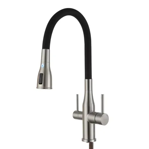 G4399-65 кухня під осмос одноваж. вис. силікон. вилив нерж. сталь гайка Ø35 (сатин/чорний) {8/1}