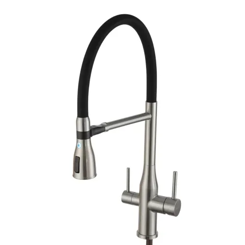 G4399-75 кухня під осмос одноваж. вис. силікон. вилив нерж. сталь гайка Ø35 (сатин/чорний) {8/1}