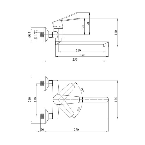 Змішувач монтується настінним способом, що оптимізує використання робочої поверхні на кухні.