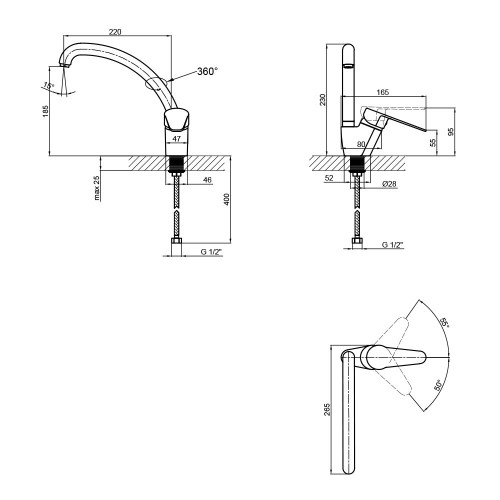 Змішувач для кухні Lidz (BLA) 14 43 008F-3 має матову поверхню чорного кольору, завдяки якій виглядає оригінально. Змішувач виконаний в класичному стилі, з високим С-виливом і зручною ручкою для перемикання холодної і гарячої води.