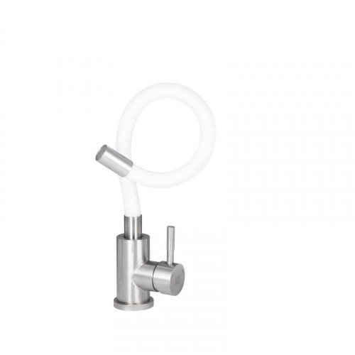 Змішувач для кухні Lidz Aria 015F3 з гнучким виливом – це сучасне та функціональне рішення для кухні. Його елегантний дизайн поєднує білий колір та нікельоване покриття, що додає стилю будь-якому інтер'єру. Гнучкий вилив дозволяє зручно спрямовувати потік води, забезпечуючи максимальний комфорт при митті посуду чи наповненні великих ємностей. Змішувач виготовлений з якісних матеріалів, стійких до зносу та корозії, що гарантує довговічність і надійну роботу.