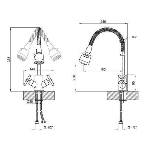 Змішувач для кухні Lidz Wind 013F4 з двома вентилями та гнучким виливом у нікельованому виконанні поєднує в собі класичний дизайн та сучасну зручність. Два вентилі дозволяють легко регулювати температуру та напір води, а гнучкий вилив забезпечує зручність у використанні. Нікельоване покриття надає змішувачу стильного вигляду та захищає його від корозії та зносу. Цей змішувач легко встановлюється і підходить для будь-якої кухні, поєднуючи класичний стиль і сучасні технології.
