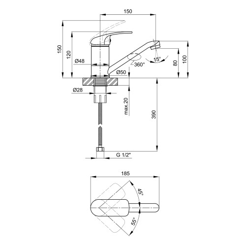 Змішувач для кухні Mars 003M (k40) (81 003 01) Chrome Lidz