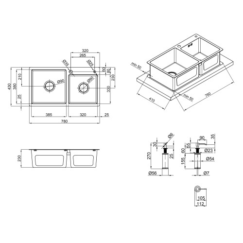 Кухонна мийка Lidz Handmade H7843 з двома чашами (арт. LDH7843BRU35387) — це практичне рішення для тих, хто цінує зручність і ефективність на кухні. Виготовлена з нержавіючої сталі товщиною 3,0/1,0 мм, мийка стійка до корозії, механічних пошкоджень і високих температур. Дві робочі зони дозволяють одночасно мити посуд та розморожувати продукти або сушити овочі, що значно прискорює кухонні процеси. У комплекті є дозатор для мийного засобу, сифон та злив-перелив. Інтегрована конструкція забезпечує охайний вигляд і легкість догляду.