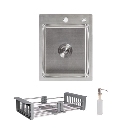 Комплект Lidz Handmade H4050 (Brushed) - ідеальне рішення для сучасної кухні. Інтегрована мийка з нержавіючої сталі з вишуканою шліфованою поверхнею Brushed забезпечує довговічність і стиль. У комплекті передбачено зручний дозатор для мийного засобу, який гармонійно доповнює дизайн мийки, а також багатофункціональний кошик Lidz K01G для оптимізації кухонного простору. Практичність, естетика та функціональність в одному наборі.