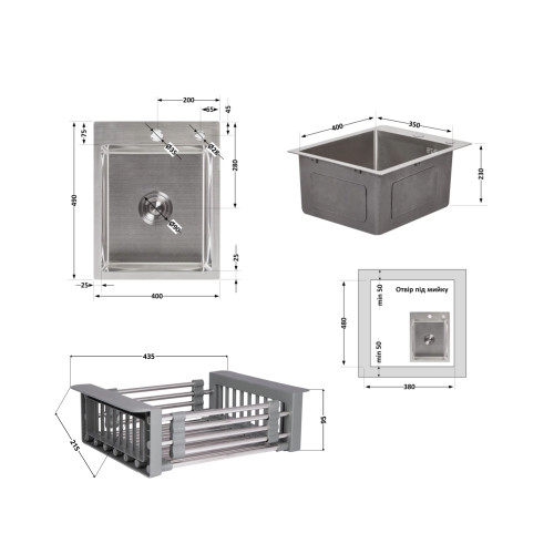 Комплект Lidz Handmade H4050 Мийка для кухні інтегрована Brushed у комплекті з дозатором + Lidz K01G Корзина для кухонної мийки