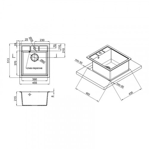 | Комплектація | Мийка, сифон, злив/перелив, корзинчастий вентиль, кріплення. |