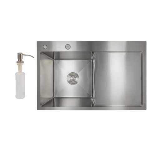 Мийка для кухні інтегрована Lidz Handmade H7849R крило праворуч (LDH7849BRUR45591) Brushed Steel 3,0/1,0 мм