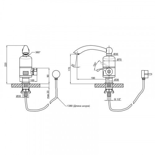 Кран для кухні проточний Lidz (WHI) 95 00 057 виготовлений з нержавіючої сталі. Призначений для швидкого нагріву проточної води для побутових цілей. Підмикається до магістралі холодного водопостачання за допомогою гнучкого шланга діаметром 1/2 "з тиском від 0.04 до 0.5 МПа і побутової електричної мережі 220 В, 50 Гц.