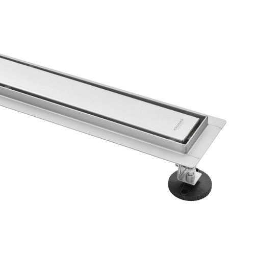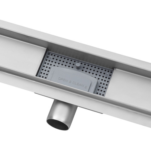 Трап призначений для монтажу врівень з підлогою, що дозволяє створити стильний та акуратний вигляд душової зони без порогів. Двостороння решітка з нержавіючої сталі у сталевому кольорі, з можливістю укладання плитки, гармонійно доповнює сучасні інтер’єри ванної кімнати.