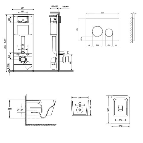 Набір Qtap інсталяція 3 в 1 Nest QT0133M425 з панеллю змиву круглою QT0111M11112CRM + унітаз з сидінням Crow QT05335170W