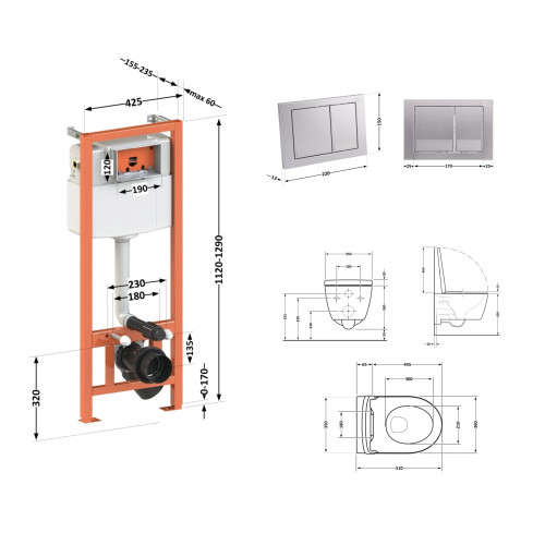 Комплект: Qtap Scorpio Ultra Quiet унітаз підвісний QT1433053EUQW + Nest комплект інсталяції 4в1 (квадратна клавіша Satin) QT0133M425 + M06029SAT