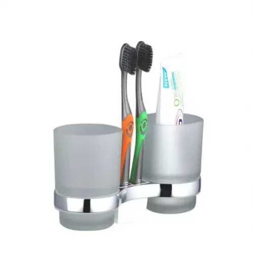 Подвійна склянка Frap F1908 з тримачем для зубних щіток, матовий хром.