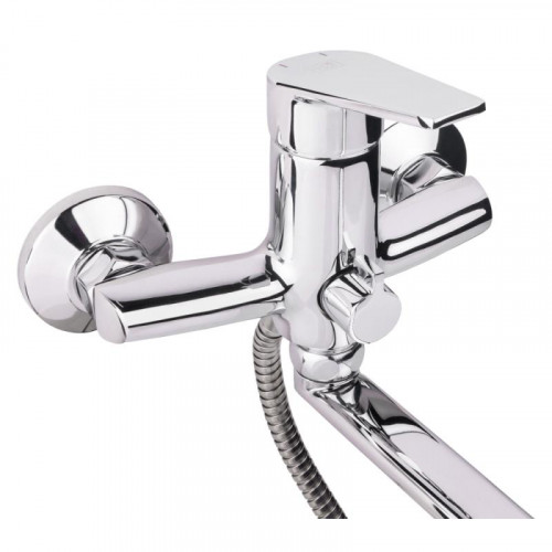 Змішувач для ванни Lidz (CRM) 19 46 005-1 New з довгим поворотним виливом виготовлено з цинку, укомплектовано кронштейном для ручного душу, душових шлангом і лійкою. Завдяки хромованому покриттю має міцну поверхню і привабливий зовнішній вигляд. Декоративні розетки приховають похибки установки на оздобленні кімнати. Напір води і її температура регулюються поворотом важеля в необхідне положення. Перемикання ванна/душ здійснюється за допомогою дивертора.