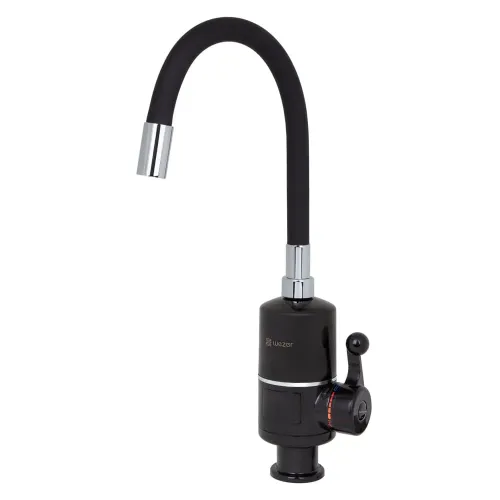 Проточний водонагрівач для кухні з гнучким поворотним виливом чорного кольору. Корпус виготовлено з ABS пластику чорного кольору. Живлення АС 220-240В, 50Гц. Тен потужністю 3кВт. Температура нагріву 30 - 65°C. Тиск в системі від 0.5 до 6 бар. Індикація температури за допомогою дисплея. Клас захисту - ІРХ4. Встановлення на мийку, фіксація прижимною гайкою, гідравлічне з'єднання - зовнішня різьба 1/2". В комплекті кабель 1.2 метри з вилкою європейського зразка. Гарантія 1 рік.