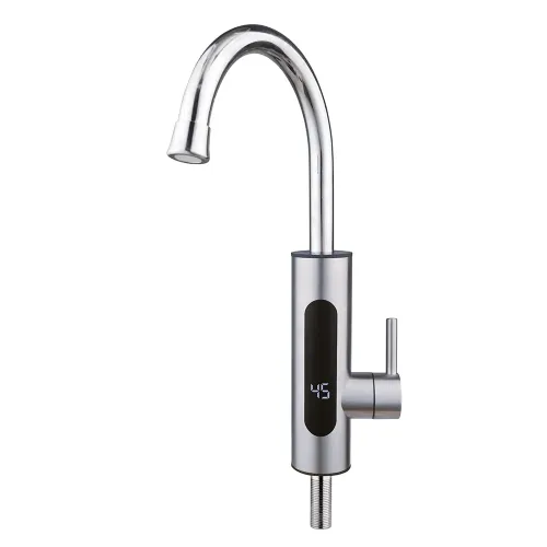 Проточний водонагрівач для кухні з поворотним виливом. Корпус виготовлено з нержавіючої сталі. Живлення АС 220-240В, 50Гц. Тен потужністю 3.3кВт. Температура нагріву 30 - 65°C. Тиск в системі від 0.5 до 6 бар. Індикація температури за допомогою дисплея. Клас захисту - ІРХ4. Встановлення на мийку, фіксація прижимною гайкою, гідравлічне з'єднання - зовнішня різьба 1/2". В комплекті кабель 1.2 метри з вилкою європейського зразка. Гарантія 1 рік.